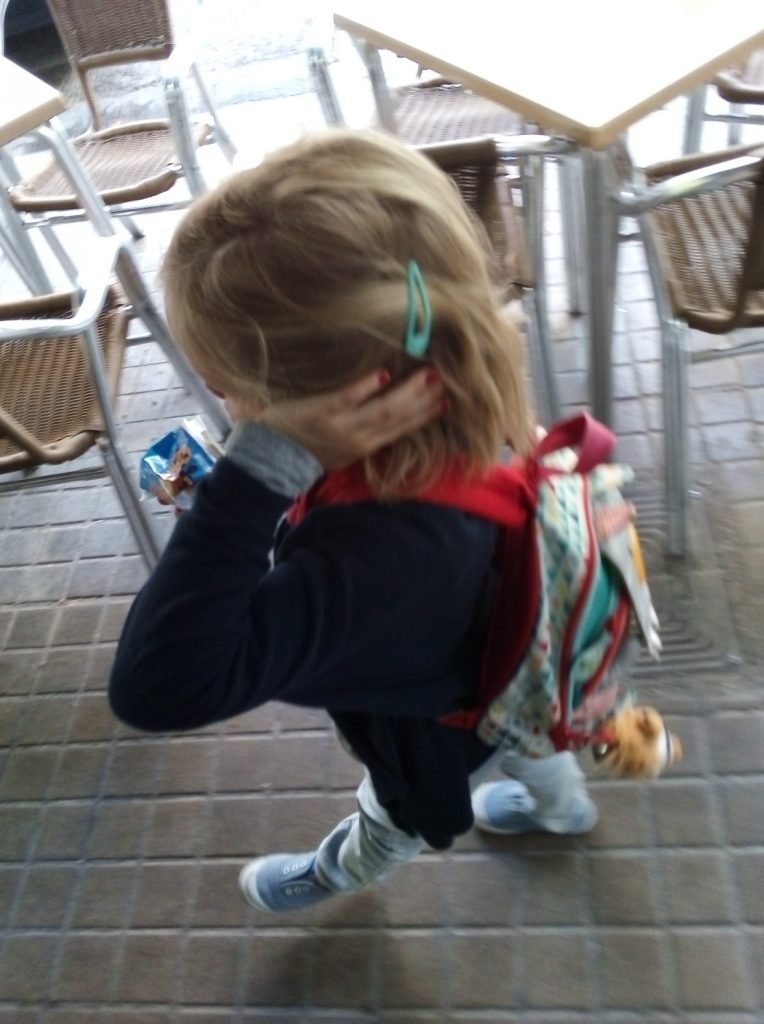 Aprendizaje ~ No tiene otitis, es que está hablando con Helena, su hija la mayor. A Helena le sigue Ana y luego están los gemelos Steve y Ximo. La rubita tiene cuatro hijos, cinco años y mucha imaginación; en realidad ella es el padre de la familia, la madre se ha ido a Port Aventura, un parque temático. Hace 10 años cuando mi hermana me dio el regalo más bonito del mundo, descubrí que ser niño es mucho más que dar por saco. Empecé a maravillarme con la capacidad de asombro de los peques, comencé a descubrir que lo más divertido es también lo más sencillo, me di cuenta que me convenía despojarme de la vergüenza porque, jugar, cantar o bailar no tienen rival. Si espabilas, te das cuenta que se aprende de un niño mucho más que lo que se puede aprender de la bibliografía básica de turno.